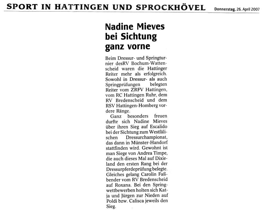 Nadine Mieves bei Sichtung ganz vorn